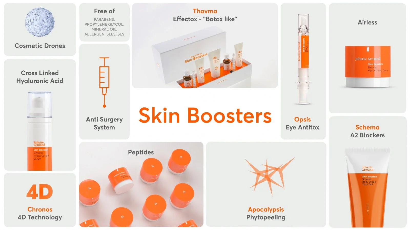 Skin Boosters by Juliette Armand are results driven treatments designed to delay your appointment with facial injectable treatments. Using advanced ingredients & technologies such cosmetic drone technology to target specific cells within the skin.